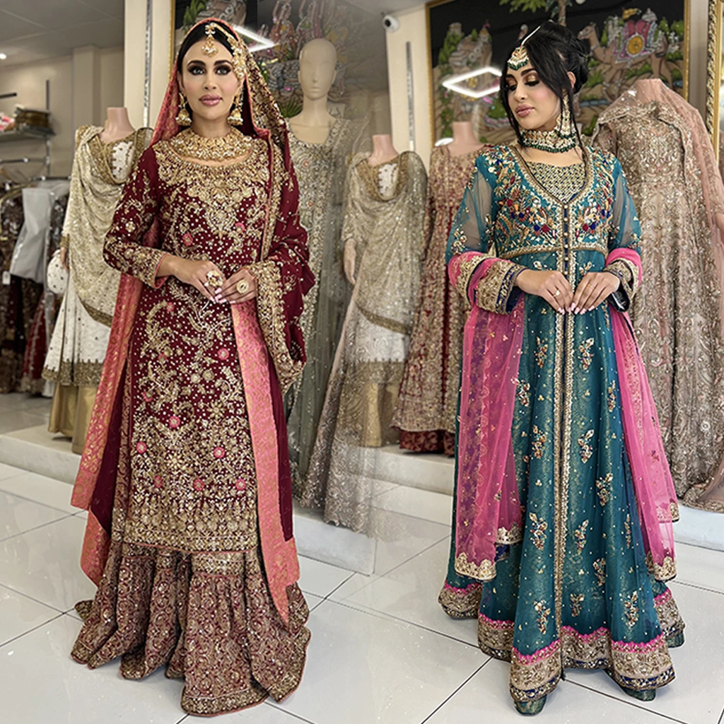 Beige, champagne and ivory have long been popular for nikah and daytime functions. Although in 2026 they are leading the way on evening celebrations too. The spark-plugged neutrals are being inclined on the part of the modern bride. Where collars are done with gleaming gold or platinum fibres.