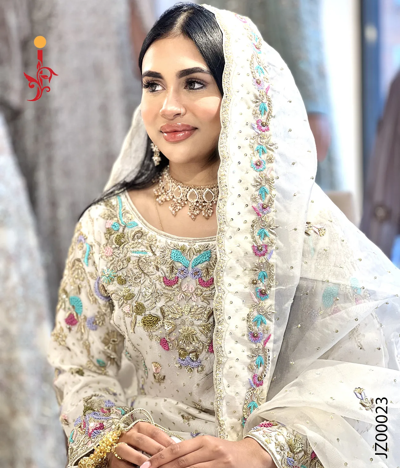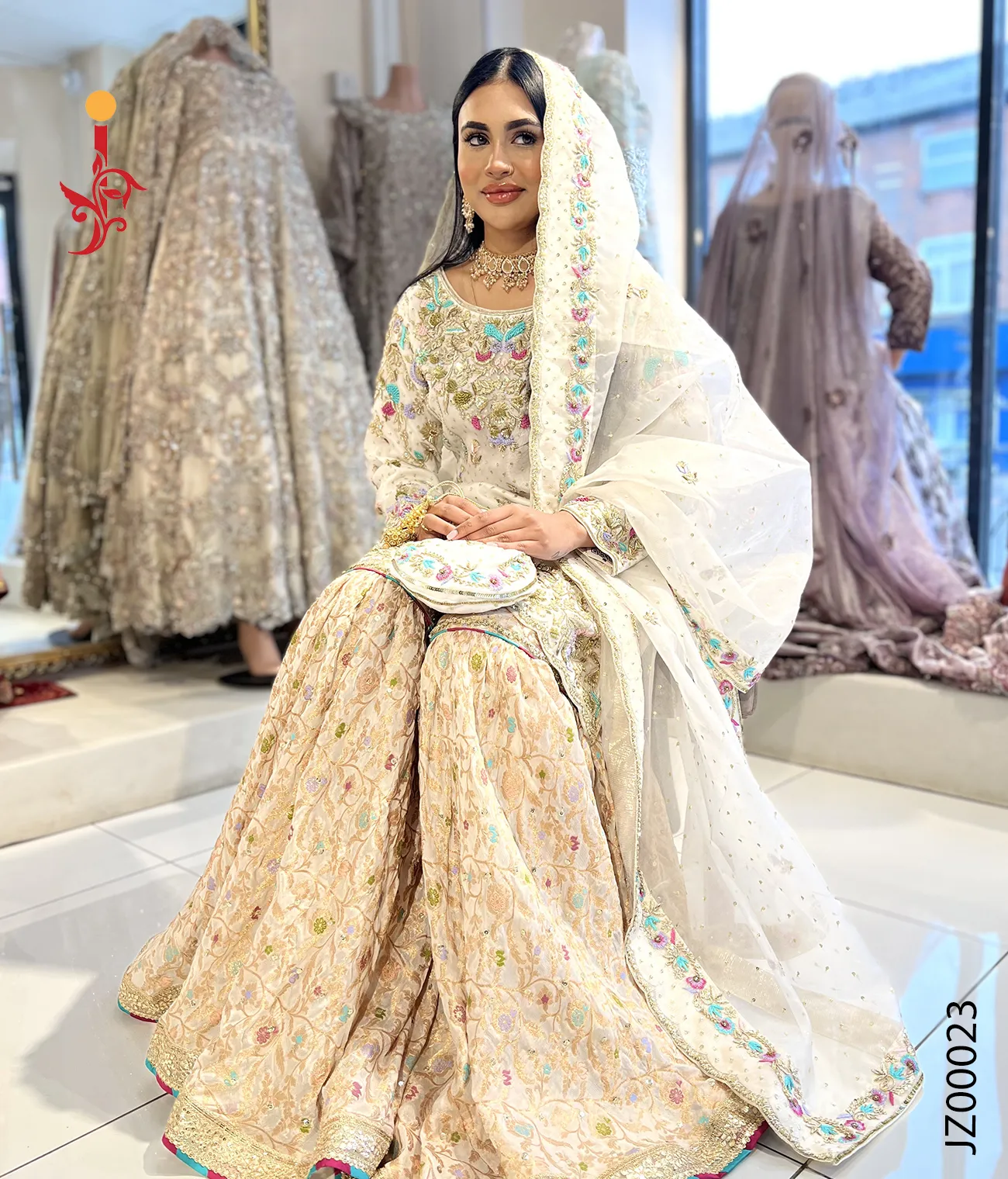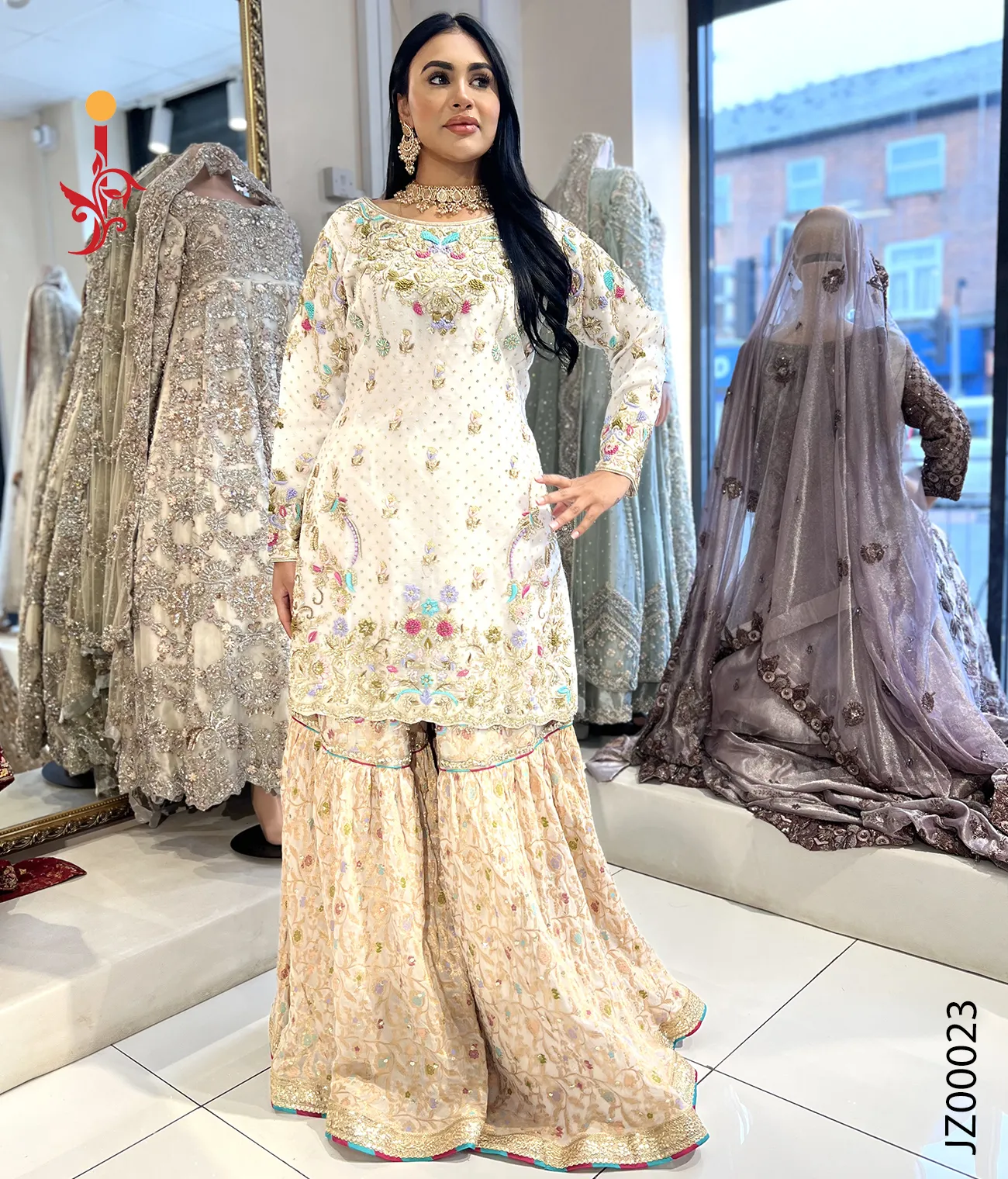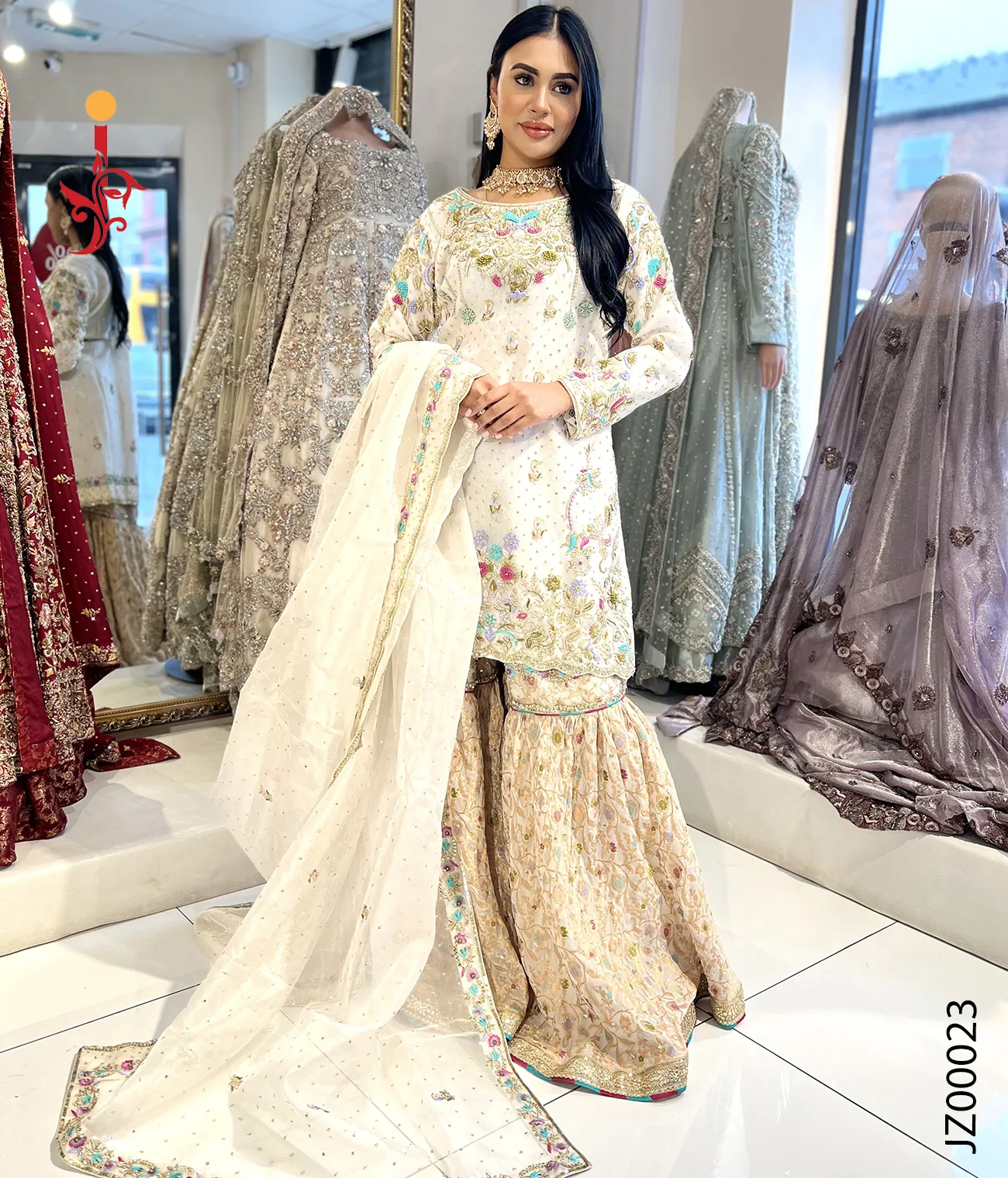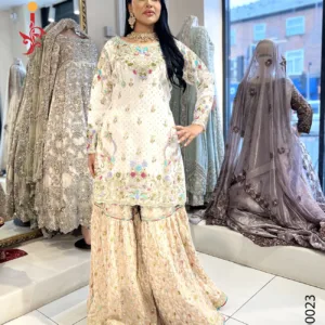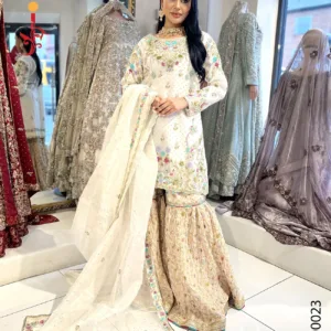 White Gharara with Multi Color...